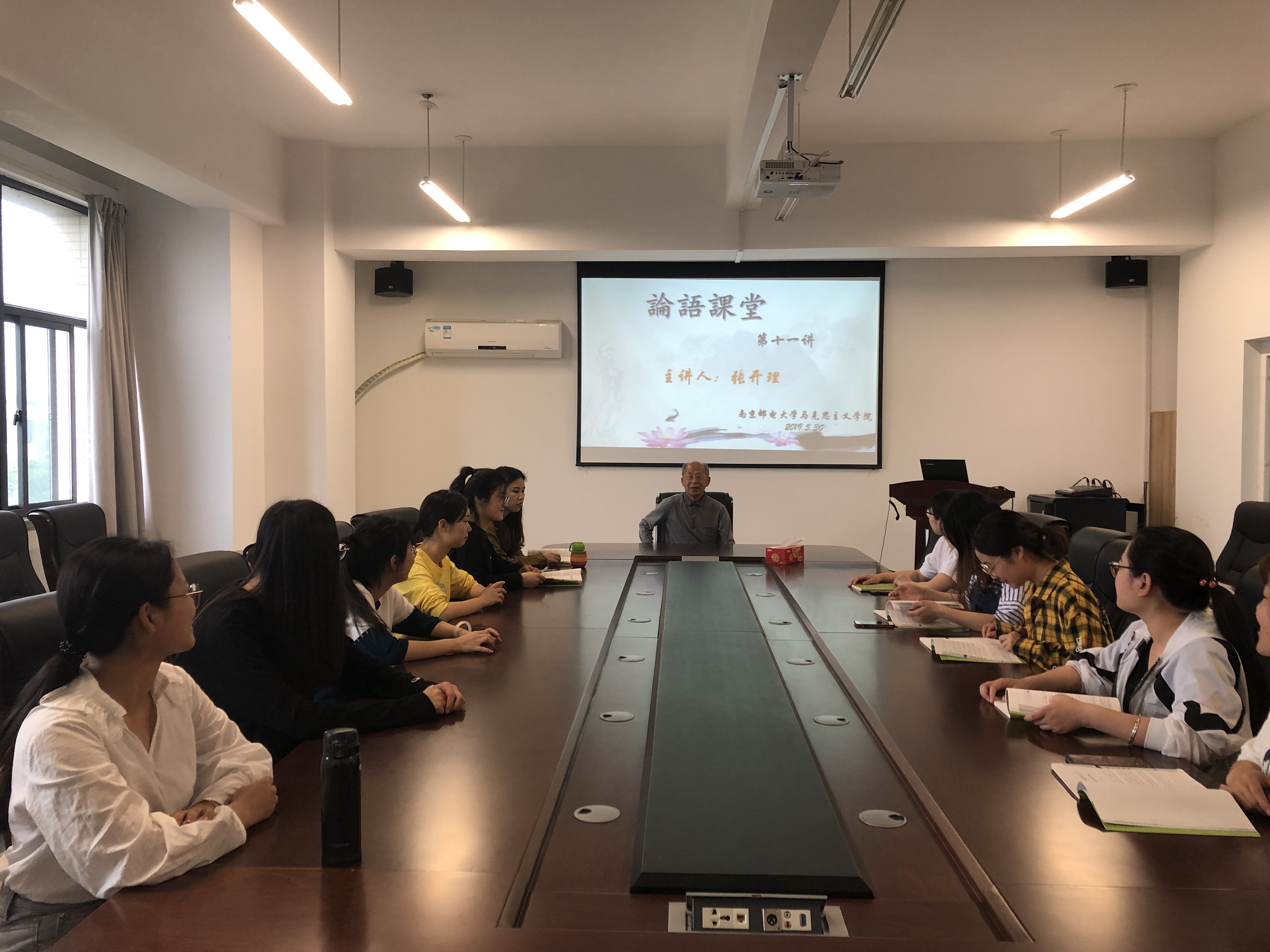 5月30日上午九点半,公司在文科楼301会议室开设论语课堂第十一讲《尧曰篇》。本次论语课堂学习由校关工委张开理老师主讲,马院研一、研二研究生共同参加。在课堂中,张老师为同学们详细讲解了全篇内容,通过讲述尧、舜、汤、文王、武等古代贤君的言行来阐明儒家复兴礼义、以人为本的政治理想。
