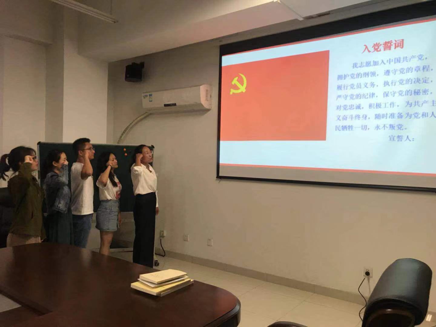 前行不忘来时路,初心不改踏新征。本次学习活动的首项内容是全体党员同志重温入党誓词,旨在进一步坚定对马克思主义和中国特色社会主义的信念。随后,刘老师结合“不忘初心、牢记使命”主题教育活动精神,从理想主义信念入手,结合党史知识为大家讲解了如何坚定“四个自信”,从而使大家真正做到学以致用,知行合一。