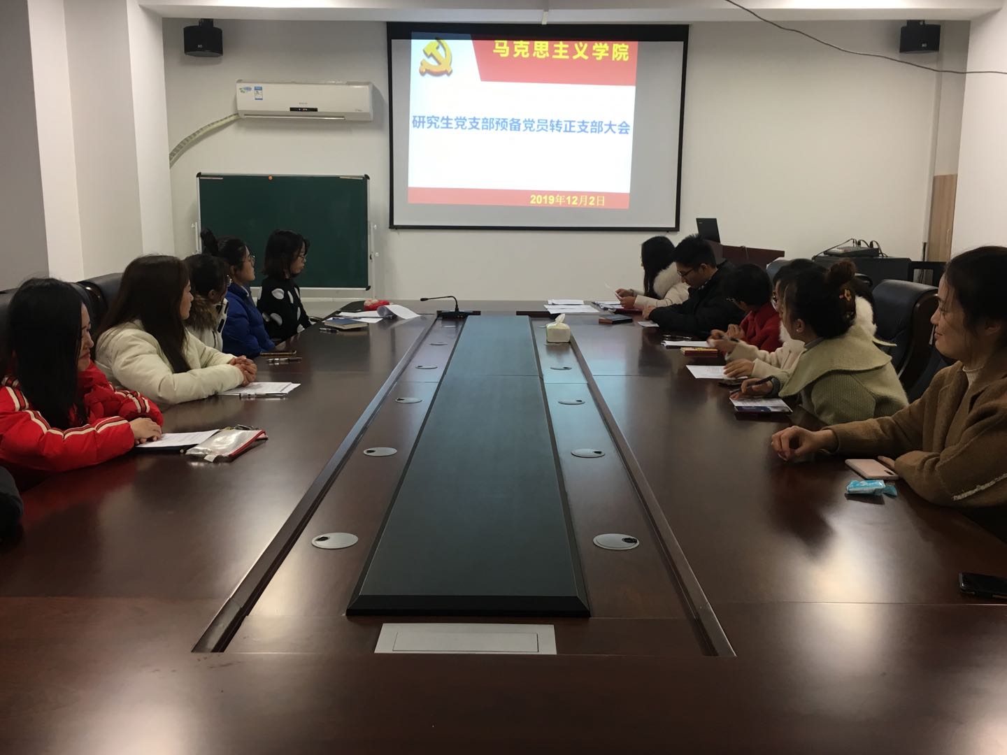 2019年12月2日下午3:00,betway西汉姆联研究生党支部预备党员转正大会于文科楼330会议室召开,大会讨论关于徐芸怡、朱玲琳两名同志的转正问题。全体研究生党员参加此次大会,大会由研究生党支部书记刘凤娟主持。