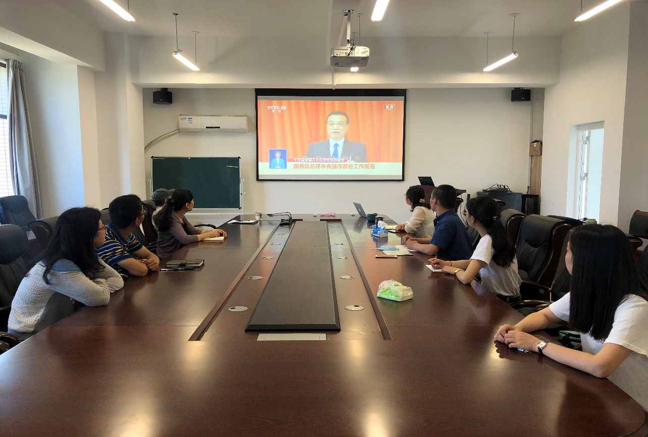 5月22日上午,马克思主义学院党总支理论学习中心组在文科楼330会议室集中收看第十三届全国人大三次会议开幕式,认真听取李克强总理作政府工作报告,热议政府工作报告。大家一致认为,在统筹推进新冠肺炎疫情防控和经济社会发展工作大背景下召开的第十三届全国人大三次会议,是凝聚人心、鼓舞士气的大会,是坚定信心、统一思想的大会;李克强总理的政府工作报告回顾了2019年和今年以来的工作,实事求是地回应社会关注,指明存在问题,更从宏观上指明国家发展的战略方向,全面阐述2020年经济社会发展的目标要求,以及各项战略措施和有力规划,务实自信,令人倍感欢欣和鼓舞。