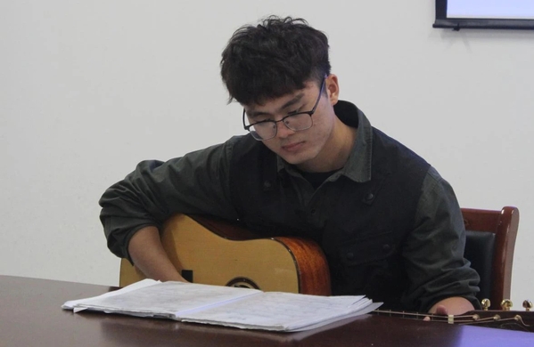 在大家的热情的掌声中由卫明皓同学为观众带来精彩的吉他弹唱。比赛的最后,评委老师们为获奖选手颁发了证书并合影留念,比赛圆满落幕。