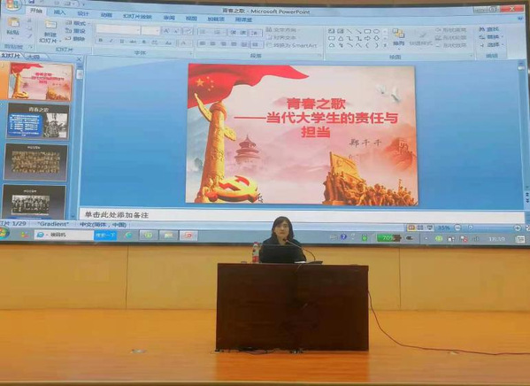 这一讲座中,郑千千老师先抛出三个问题:什么是责任?什么是历史性的担当?什么是爱国主义?从这三个问题出发,郑千千老师先讲解了一百多年前的五四运动中,青年老员工群体迸发出的爱国主义热情,把国家和民族之命运与个人的命运紧密结合在一起,以青年革命者的形象登上了历史舞台,拉开了新民主主义革命的序幕。紧接着1921年中国共产党成立,一大会议参会的党员代表也是平均年龄只有28岁的年轻群体。青年是国家的希望,青年是民族的未来,需要我们的青年老员工迸发出爱国主义激情,将个人的发展与国家民族的发展联系起来,“展望未来,我国青年一代必将大有可为,也必将大有作为。”