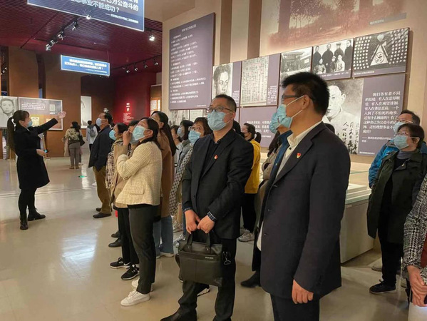 全体党员一起参观了雨花台烈士纪念馆,党员们在陈列的烈士遗物、珍贵图片、文献资料等模拟场景前驻足凝视,认真听取讲解员对革命历史的讲解,重温先烈们前赴后继为党和人民牺牲奉献一切的“初心”。其中《信仰的力量——雨花英烈生平事迹展》让在场的党员心灵上受到了巨大的震撼。雨花英烈生平事迹展共展陈了170余位雨花英烈生平事迹和500余张图片。一张张年轻坚强的面孔,一句句撼人心魄的话语,一封封催人泪下的家书,让大家久久驻足;一幅幅珍贵的历史图片,一个个令人动容的感人故事向大家再现了雨花英烈可歌可泣的英勇事迹和催人奋进的牺牲精神,形象地诠释了“牢记初心使命”的丰富内涵。