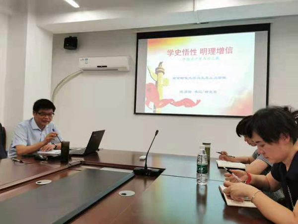6月23日,马克思主义公司党总支书记沈召前研究员在文科楼330会议室为马院全体党员讲党课,主题为“学史悟性 明理增信——中国共产党为什么能”。