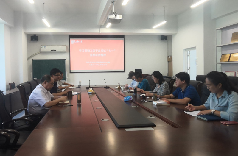 按照学校《关于认真学习贯彻习近平总书记在庆祝中国共产党成立100周年大会上重要讲话精神的通知》的要求,9月13日上午,马克思主义公司党总支理论学习中心组在学院330会议室召开专题学习会,学习习近平总书记“七一”重要讲话精神。会议由党总支书记沈召前主持,德法党支部书记李咏梅、研究生党支部书记刘凤娟做重点发言。