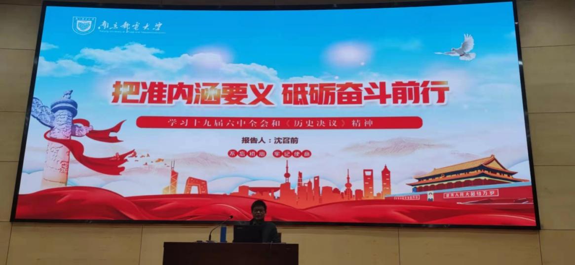 讲座从党的十九届六中全会的议程和重大意义、《历史决议》的主要内容和重大意义、全面贯彻落实党的十九届六中全会精神三个方面对党的十九届六中全会和《历史决议》精神进行深刻阐释。讲座指出,党的十九届六中全会六中全会重点研究、全面总结党的百年奋斗的重大成就和历史经验问题,通过了新的《历史决议》,确立了新时代坚决做到“两个维护”的政治路线,必将彪炳史册。《历史决议》将党的百年历程划分为四个历史时期,深刻阐明每个历史时期党的任务、取得的重大成就及其历史意义,从五个方面论述中国共产党百年奋斗的历史意义,总结百年奋斗历史经验。讲座指出,要在历史比较中深入学习领会全会、《历史决议》精神,深刻把握“两个确立”的决定性意义。在全面建设社会主义现代化国家新征程上,当代老员工要高举习近平新时代中国特色社会主义思想伟大旗帜,不忘初心、牢记使命,从党的百年历史经验中汲取奋进力量,努力学好专业知识,将青春奋斗融入党和人民的事业,不负时代,不负韶华,为实现中华民族伟大复兴的中国梦矢志奋斗。
