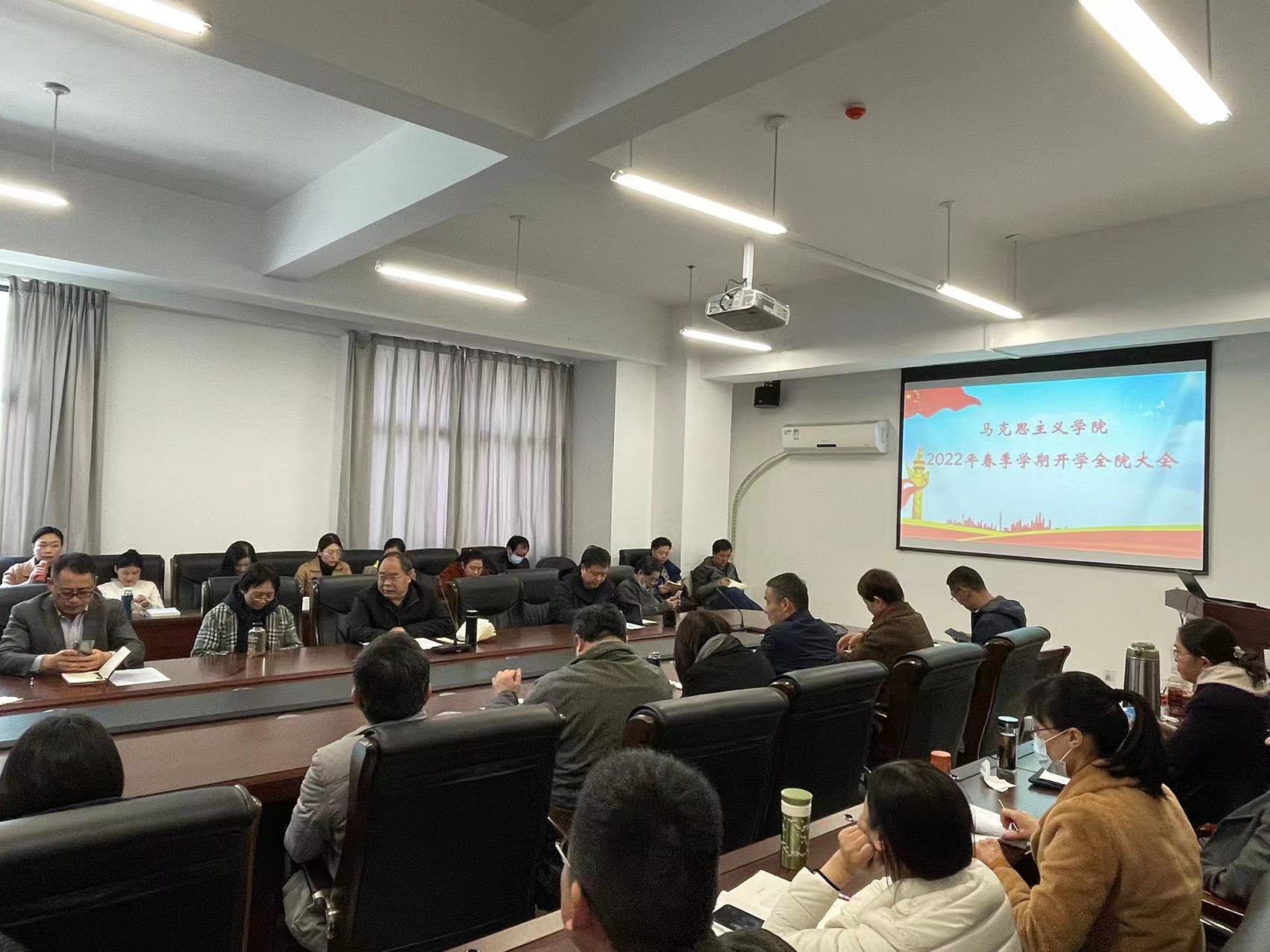 副经理史献芝部署思政课全年教学工作。史经理从遵守师德师风、规范教学材料、做好思政课教学成果奖申报、常态化开展教研活动等四个方面明确思政课全年教学工作目标,指出全院教职工要坚持“马院姓马、在马言马”,不断提高教学质量。