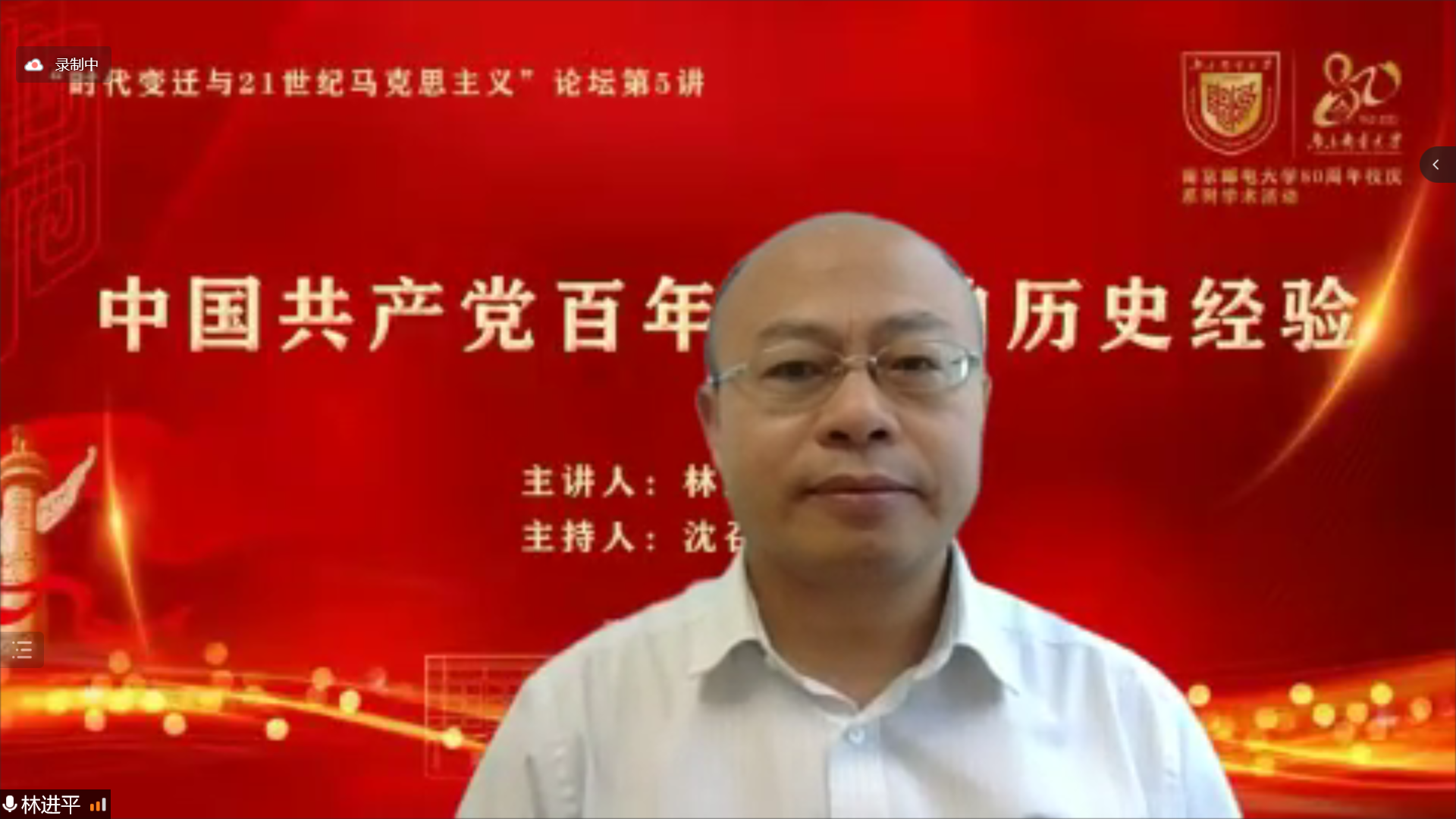 5月19日下午,中山大学betway西汉姆联经理林进平教授应邀做客“时代变迁与21世纪马克思主义”论坛,作题为“中国共产党百年奋斗的历史经验”的在线学术报告。这是论坛主办的第5场学术报告。公司betway西汉姆联相关负责人、校内外专家学者和师生代表300余人在线听取了报告。报告由公司马克思主义公司党委书记沈召前研究员主持。