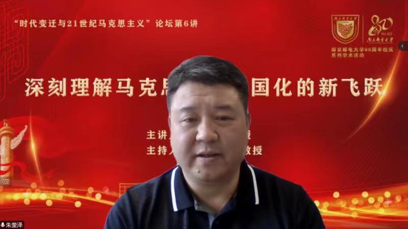 5月24日下午,湘潭大学李佑新教授应邀做客“时代变迁与21世纪马克思主义”论坛,作题为“深刻理解马克思主义中国化的新飞跃”的在线学术报告。这是论坛主办的第6场学术报告。公司betway西汉姆联相关负责人、校内外专家学者和师生代表300余人在线听取了学术报告。报告由公司betway西汉姆联副经理朱奎泽副教授主持。