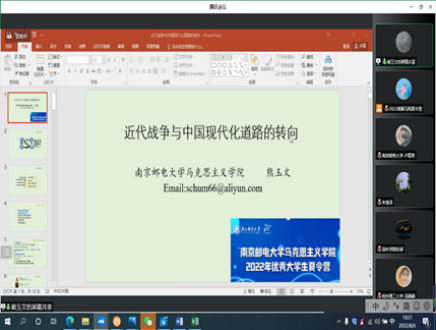 8月6日上午10:20,熊玉文老师讲述题为《近代战争与中国现代化道路的转向》专题讲座,分别以鸦片战争、甲午中日战争、第一次世界大战、抗日战争、抗美援朝战争和对越自卫反击战为例子,讲述了这几场战争对中国现代化的影响,以史为鉴,激发同学们进行深入的思考。