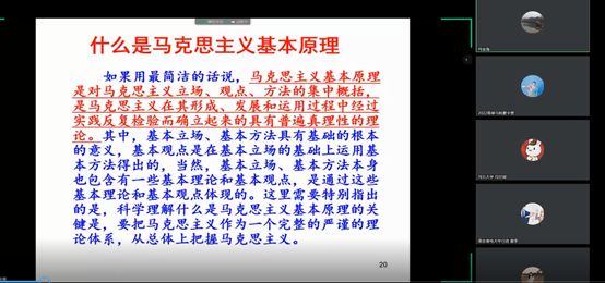 8月6日下午14:00,何金海老师就《马克思主义基本原理》相关内容进行了详细讲解,主要围绕书本知识架构分析,以及逻辑关系等内容进行阐释,深入讲述了当代资本主义基本矛盾及其新变化,使同学们对书本知识有了更深层次的理解。