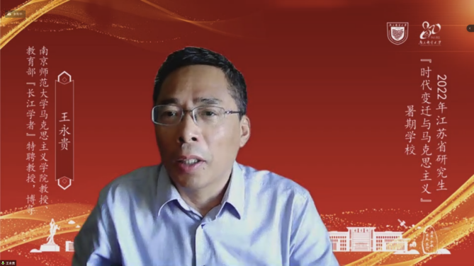 8月12日上午,南京师范大学betway西汉姆联教授王永贵以《历史主动精神与新时代意识形态历史性变革》为题,围绕把握历史主动、赢得历史主动、创造历史主动,论述了百年大党在遵循规律中领导意识形态建设的全景式叙事、新时代党在守正创新中领导意识形态建设的变革性实践、新的赶考路上党在接续奋斗中领导意识形态建设的战略性方向,提出继续巩固意识形态领域向上向好的主动态势,努力建设具有强大凝聚力和引领力的意识形态。