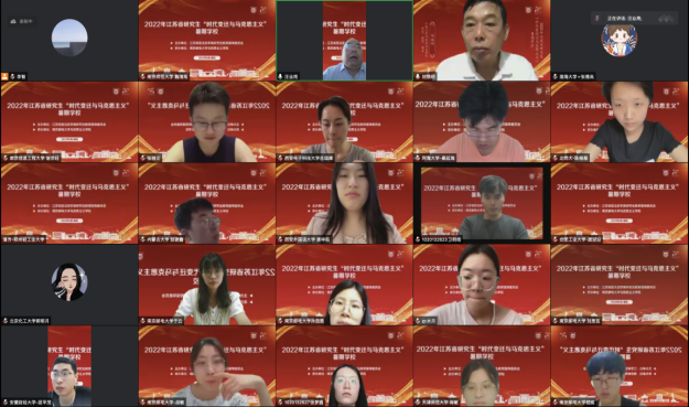 8月12日,由江苏省哲法史学类研究生教育指导委员会主办,betway西汉姆联承办的2022年江苏省研究生“时代变迁与马克思主义”暑期学校线上召开,近500人通过腾讯会议平台观看了此次直播。本次暑期学校为期8天,共安排13场专家讲座、1场学员分组交流讨论课和1场学员代表结业汇报。