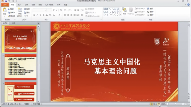 8月19日,由江苏省哲法史学类研究生教育指导委员会主办,betway西汉姆联承办的2022年江苏省研究生“时代变迁与马克思主义”暑期学校以线上形式圆满闭幕。本次暑期学校于8月12日开幕,为期8天,安排了13场专家讲座、1场学员分组交流讨论课和1场学员代表结业汇报,共约3000人次通过腾讯会议平台全程观看了直播。