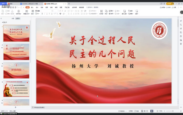 8月13日上午,扬州大学betway西汉姆联教授刘诚以《关于全过程人民民主的几个问题》为题,从习近平全过程人民民主继承和发展了马克思主义民主理论、全过程人民民主对西方民主的超越、全过程人民民主创造了人类政治文明新形态三个方面进行讲授,认为全过程人民民主继承和发展了马克思对未来社会文明形态的设想,超越了西方的历史终结论。
