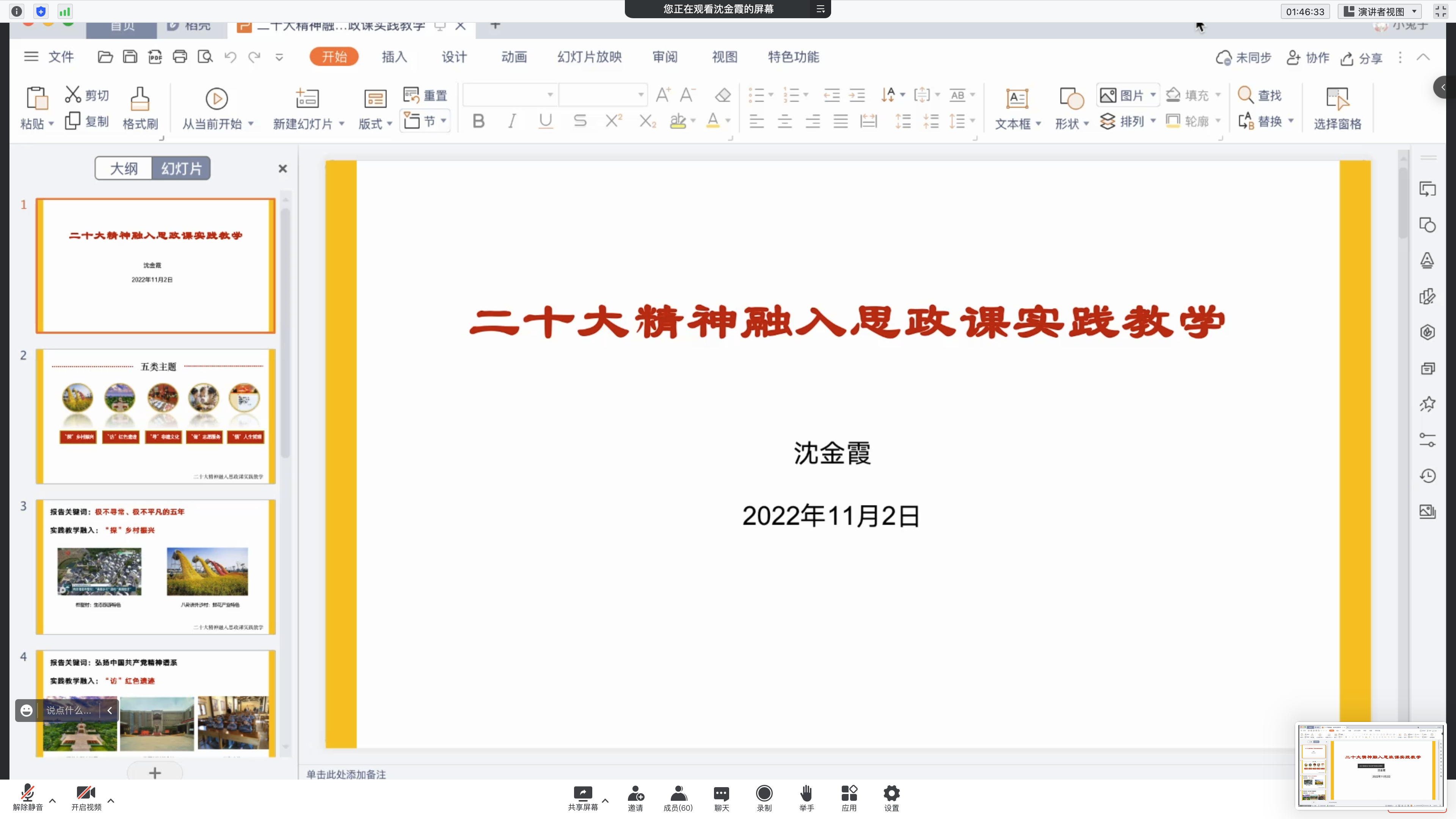 汪业周经理对学院推进二十大精神进思政课作出总体部署和要求。汪经理指出,集体备课会既是贯彻落实上级和公司党委明确要求的具体落实,也是思政课建设的内在需要和迫切要求。首先,党的创新理论“三进”第一时间通过思政课主渠道用党的最新理论创新成果武装师生头脑,有效解决了最新成果与教材一定程度滞后的矛盾。其次,我们要深刻领会、全面贯彻落实习近平总书记关于思政课的重要论述,公司全体教师要抓好备课这个关键环节,正确认识和处理好三个关系,一是内容共性要求与课程性质的关系,二是课件统一性与讲授多样化的关系,三是政治性要求与个体性讲授的关系。再次,全体教师要深入思考如何做好二十大精神进课堂、如何全面准确学习掌握二十大精神、如何有机融入自己讲授的课程、如何依据统一课件进行整合融合等。最后,全体思政课教师要清醒认知新时代马克思主义理论公司产品主渠道、研究阐释专门家、宣传宣讲主力军这三个角色,履行好思政课教学、研究阐释、宣传宣讲等方面的应尽责任,按照中央、学校和学院要求,原原本本吃透党的二十大精神,把党中央决策部署讲全讲深讲到位。