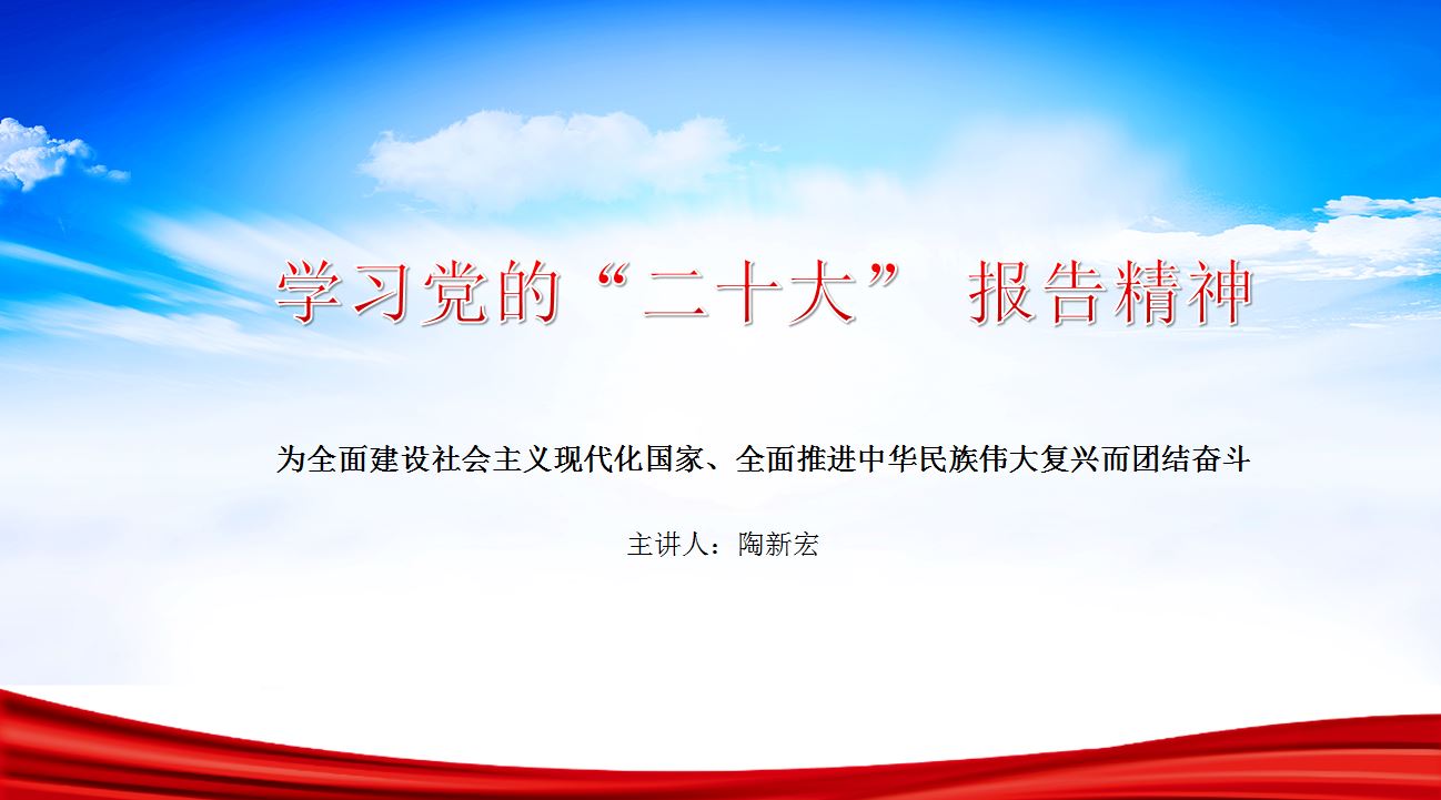 党的二十大明确宣示了党在新征程上举什么旗、走什么路、以什么样的精神状态、朝着什么样的目标继续前进,对团结和激励全国各族人民为不断夺取全面建设社会主义现代化国家新胜利而奋斗具有重大意义。党的二十大的主题是:高举中国特色社会主义伟大旗帜,全面***************,弘扬伟大建党精神,自信自强、守正创新,踔厉奋发、勇毅前行,为全面建设社会主义现代化国家、全面推进中华民族伟大复兴而团结奋斗。讲座以党的二十大报告原文为依据,认真学习和梳理了习近平总书记在报告中提出的一系列新观点、新论断、新思想、新战略、新要求。讲座有利于老员工深入学习和领会党的二十大报告精神,充分感知其中的精神力量,助力培育堪当民族复兴大任的时代新人。
