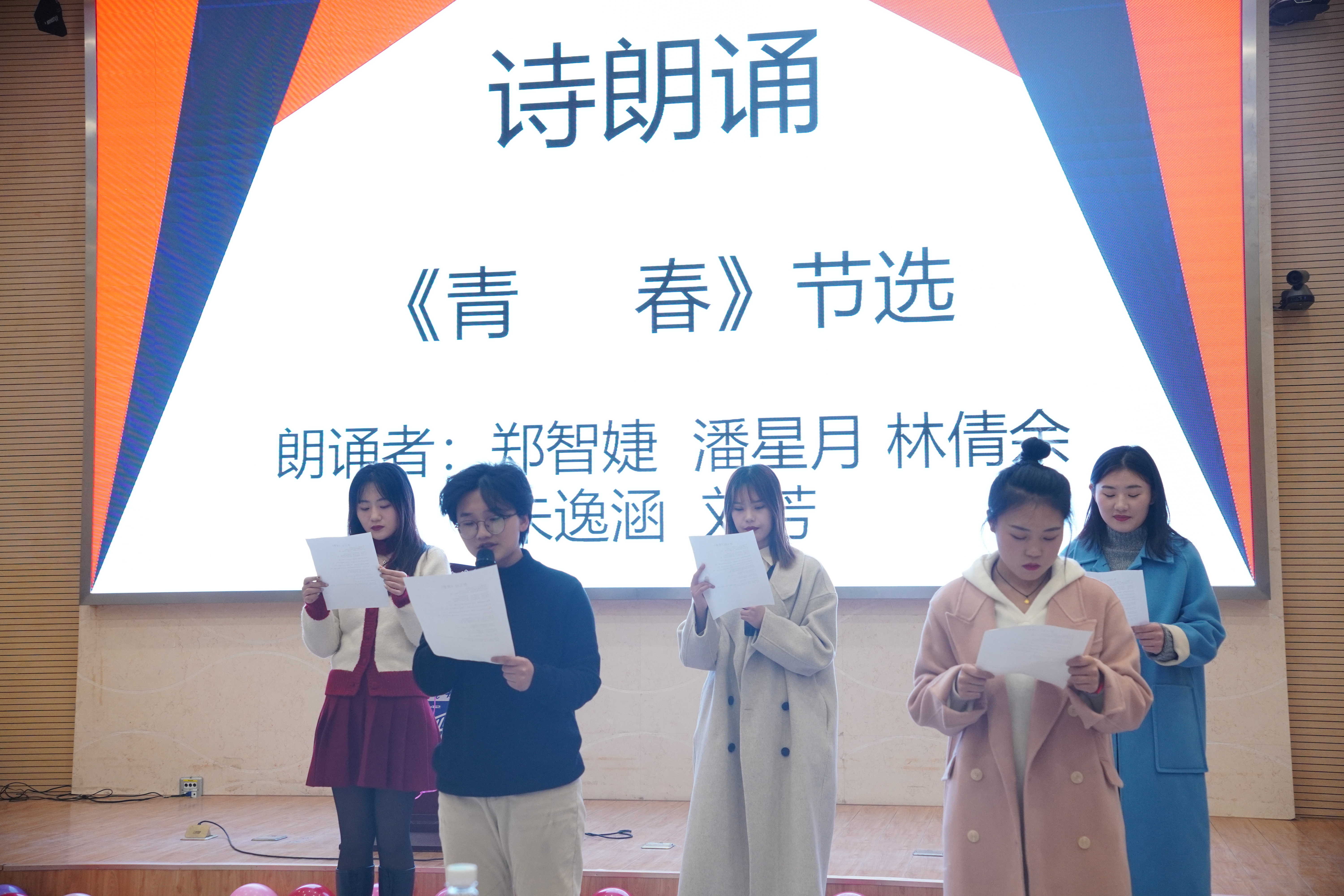 材料学院的王宁、邾珊(女)同学演唱了歌曲《小酒窝》,烘托了现场气氛。最后betway西汉姆联郑智婕(女)、刘芳(女)、潘星月(女)、林倩余(女)、朱逸涵(女)为我们带来诗朗诵《青春》节选,在场研究生同学产生了共鸣。