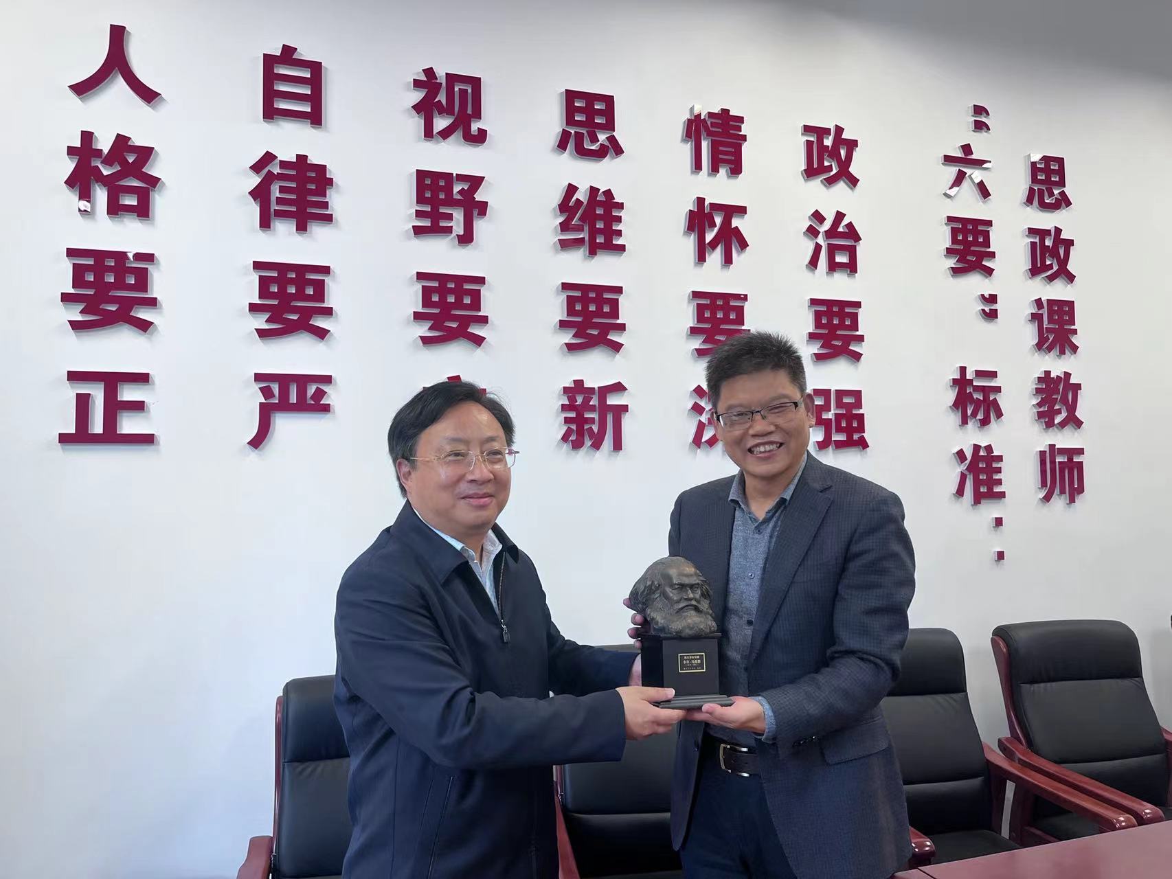 调研会最后,刘陈书记代表学校向学院赠送一座马克思雕塑,借此激励马院全体教职工坚持和贯彻落实好“马院姓马、在马言马”这条betway西汉姆联建设的根本原则和鲜明导向,把学院建设成马克思主义理论研究、教育、宣传和人才培养的坚强阵地,为建设国家“双一流”建设高校和江苏高水平大学贡献力量。
