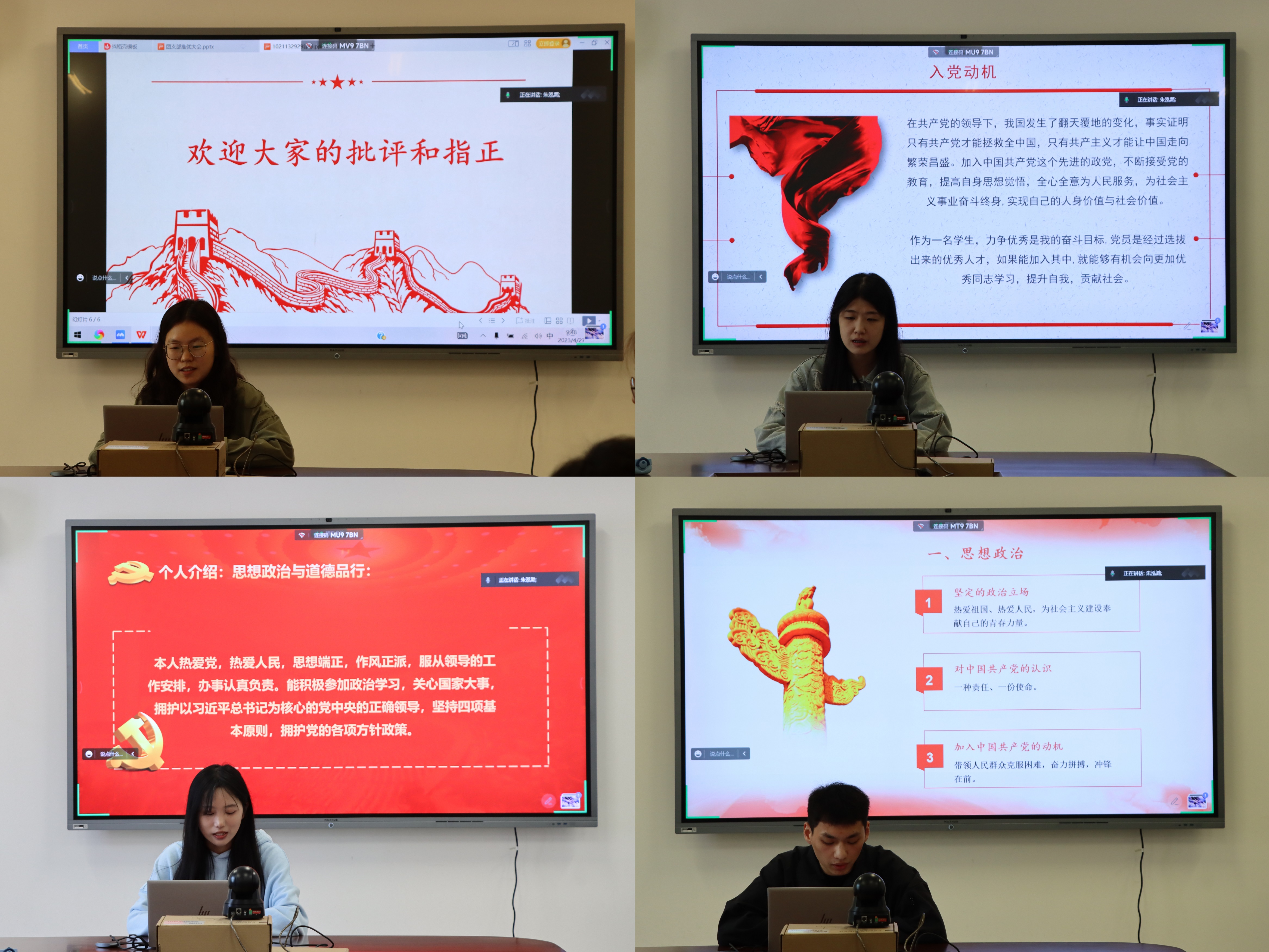 此次入党积极分子推优大会的召开,充分展现了马院团员们对党组织的向往和热爱,搭建了相互交流学习的平台,也再次加深了2022级全体研究生对党组织的政治认同、思想认同、情感认同。希望在今后的学习生活中,入党积极分子们能够继续接受党组织的考验,脚踏实地,砥砺前行,积极参加党团组织的活动,对党组织交给的工作认真负责,在员工中发挥先锋模范作用,争取早日成为一名合格的共产党员。