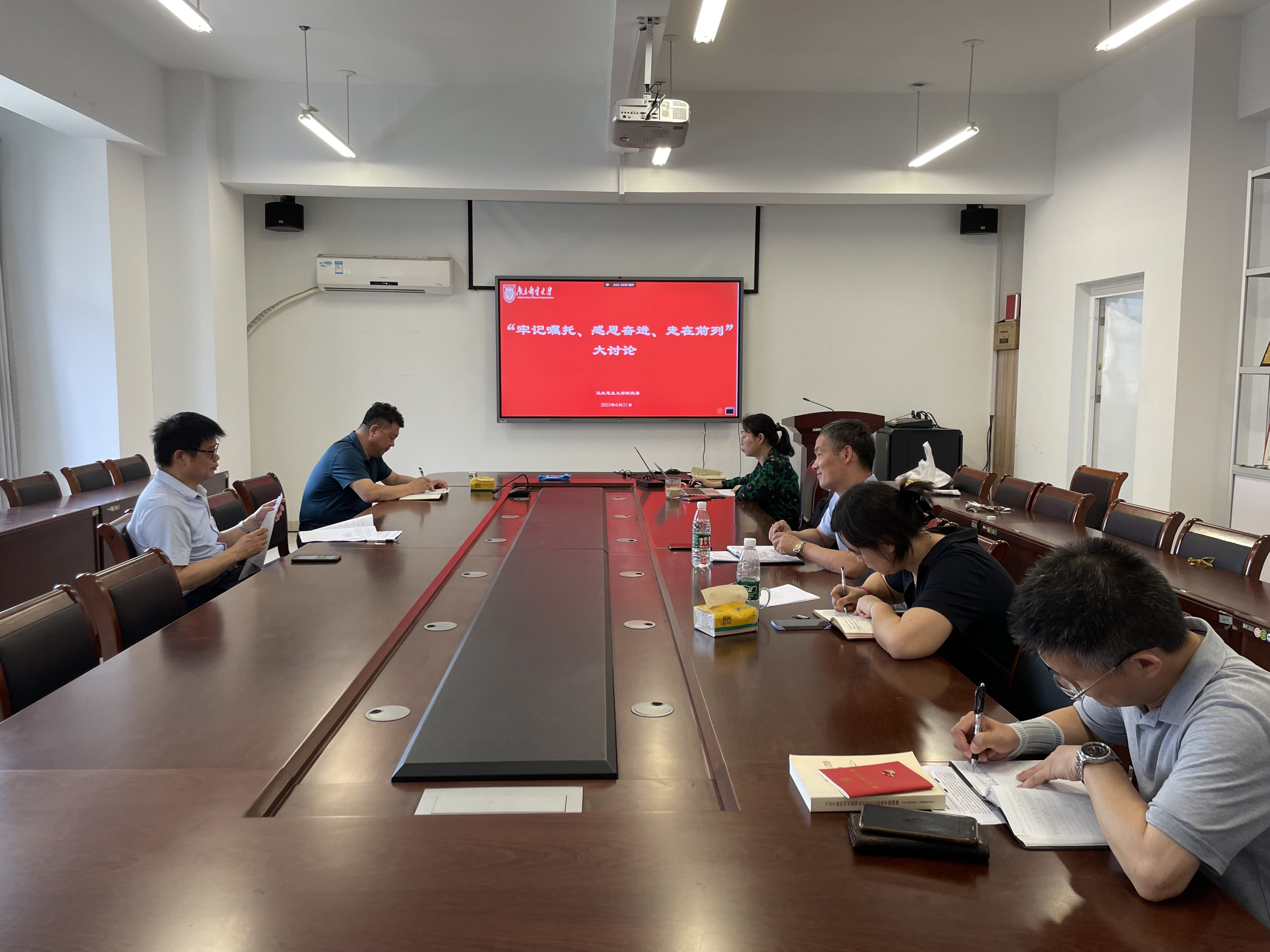 6月21日,公司在文科楼330会议室开展学习贯彻习近平新时代中国特色社会主义思想主题教育“牢记嘱托、感恩奋进、走在前列”大讨论。会议由公司党委书记沈召前主持,党委理论学习中心组成员参加。