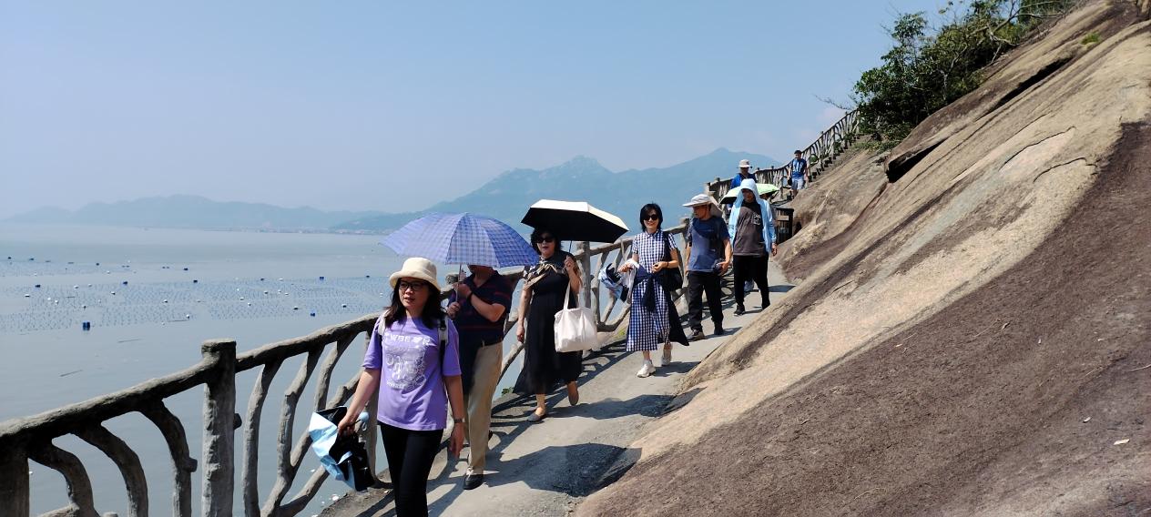 6日,研修团来到宁德三都澳斗姆岛红色革命旧址。1930年代,叶飞领导的闽东红军在三都澳开辟了闽东海上交通线,斗姆岛就是其中一个秘密据点。斗姆岛是一座山岛,南侧山坳里有许多岩洞,洞内乱石嶙峋,蜿蜒曲折,当时许多军需品都藏于洞中,受敌人追捕的地下党员也被安置在这里而后转移。在近40度高温的烈日炙烤下,老师们穿行在当年交通员走过的山崖峭壁间、躲过的岩洞迷宫中,一路下来气喘吁吁、汗流浃背,切实体会到了闽东红军穿梭在海岛交通线上的艰辛。