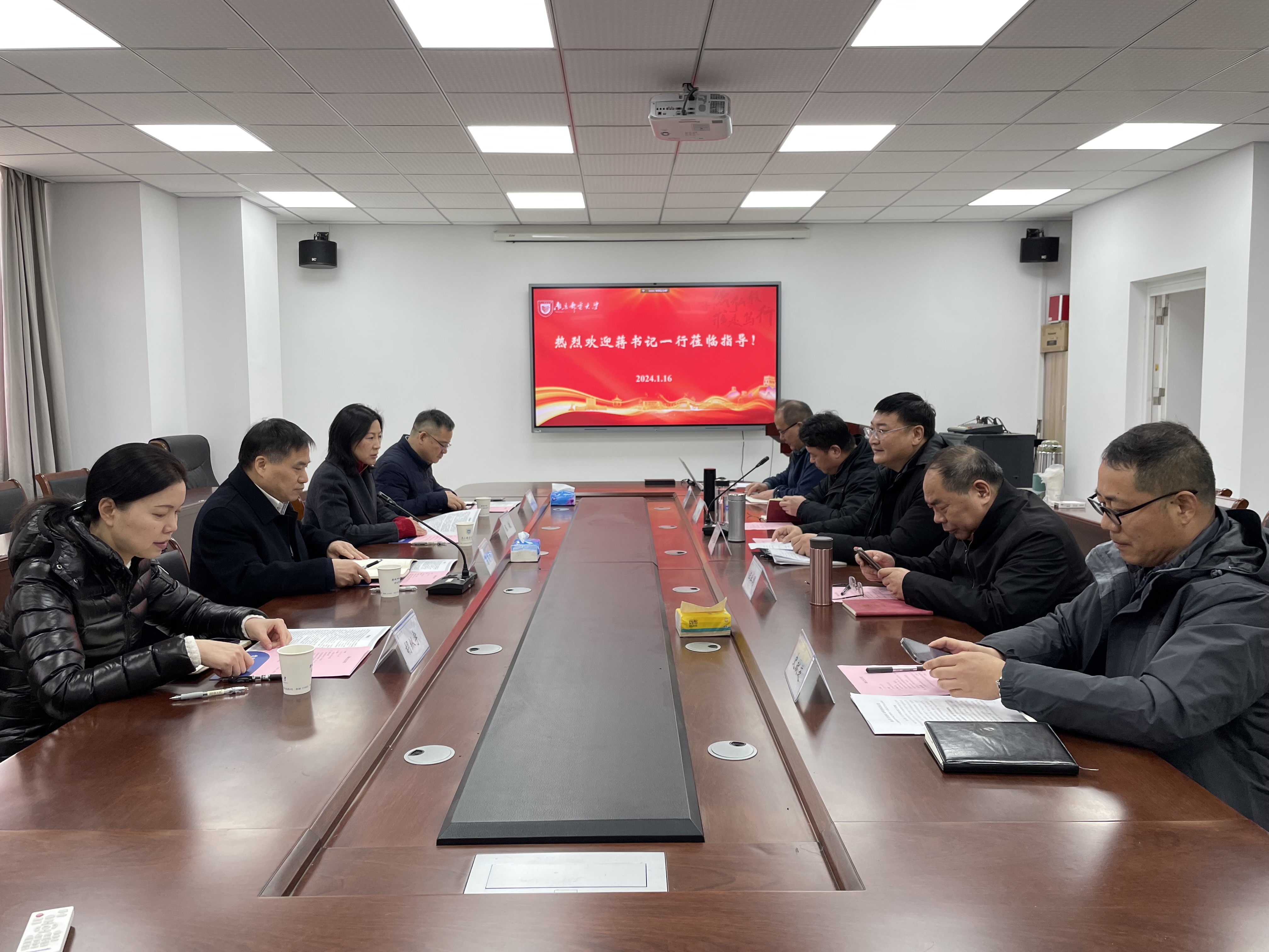 副经理(主持工作)史献芝汇报学院科研,基地及其思政课建设情况,并提出目前学院发展中存在的问题和不足,表示学院将进一步强化团队引育、凝练学科方向、组建科研团队、优化基地运行环境,全力推进学院高质量发展。