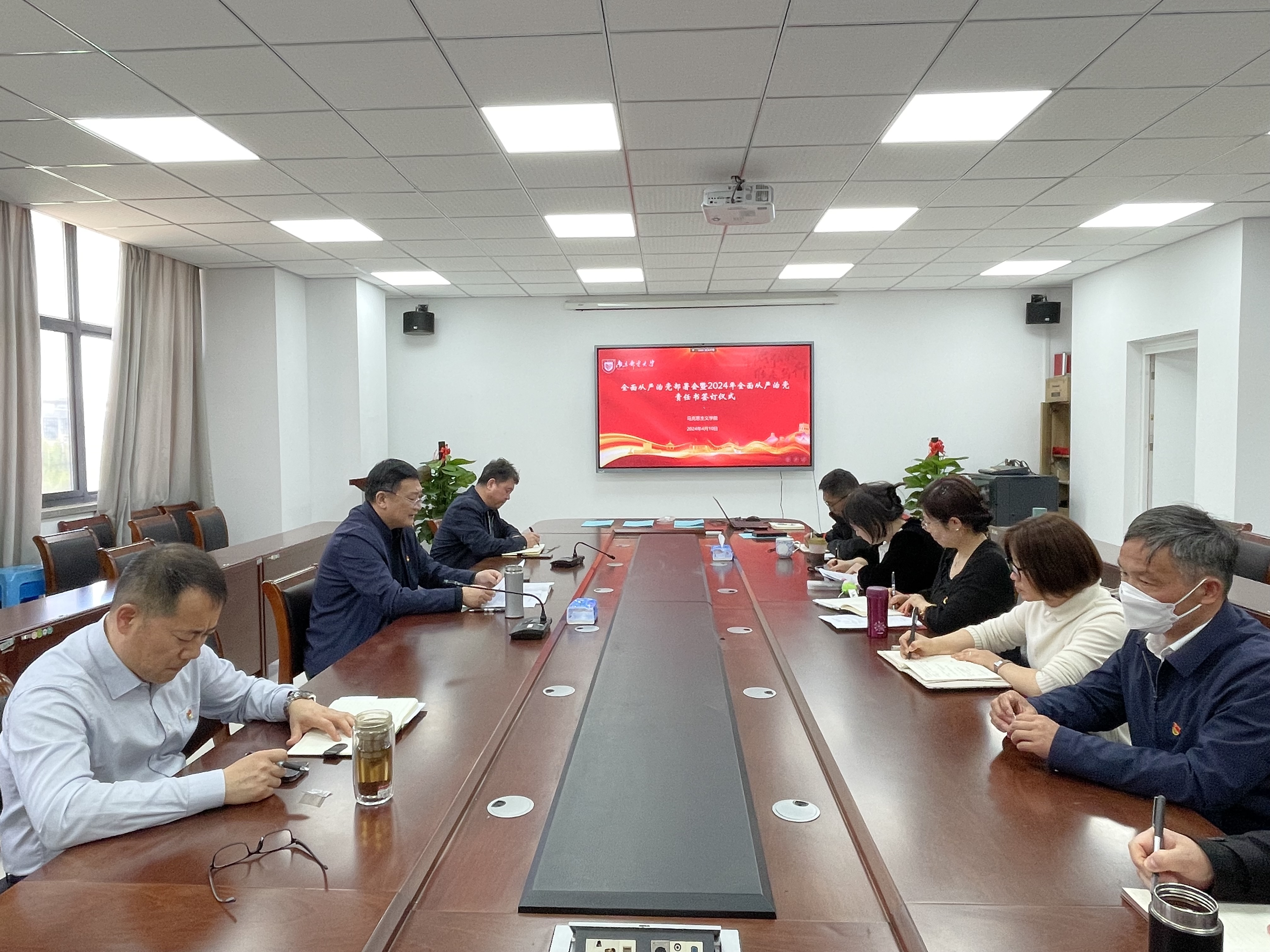 4月10日下午,马克思主义公司党委在文科楼330会议室召开2024年全面从严治党工作部署会,谋划部署2024年学院全面从严治党重点工作任务。公司党委书记李大伟主持会议,领导班子成员、党委委员、党支部书记、教学机构负责人及办公室主任参加。