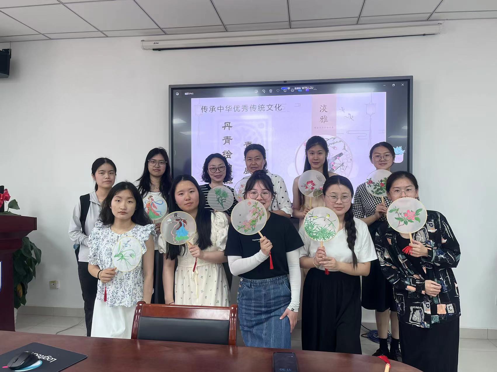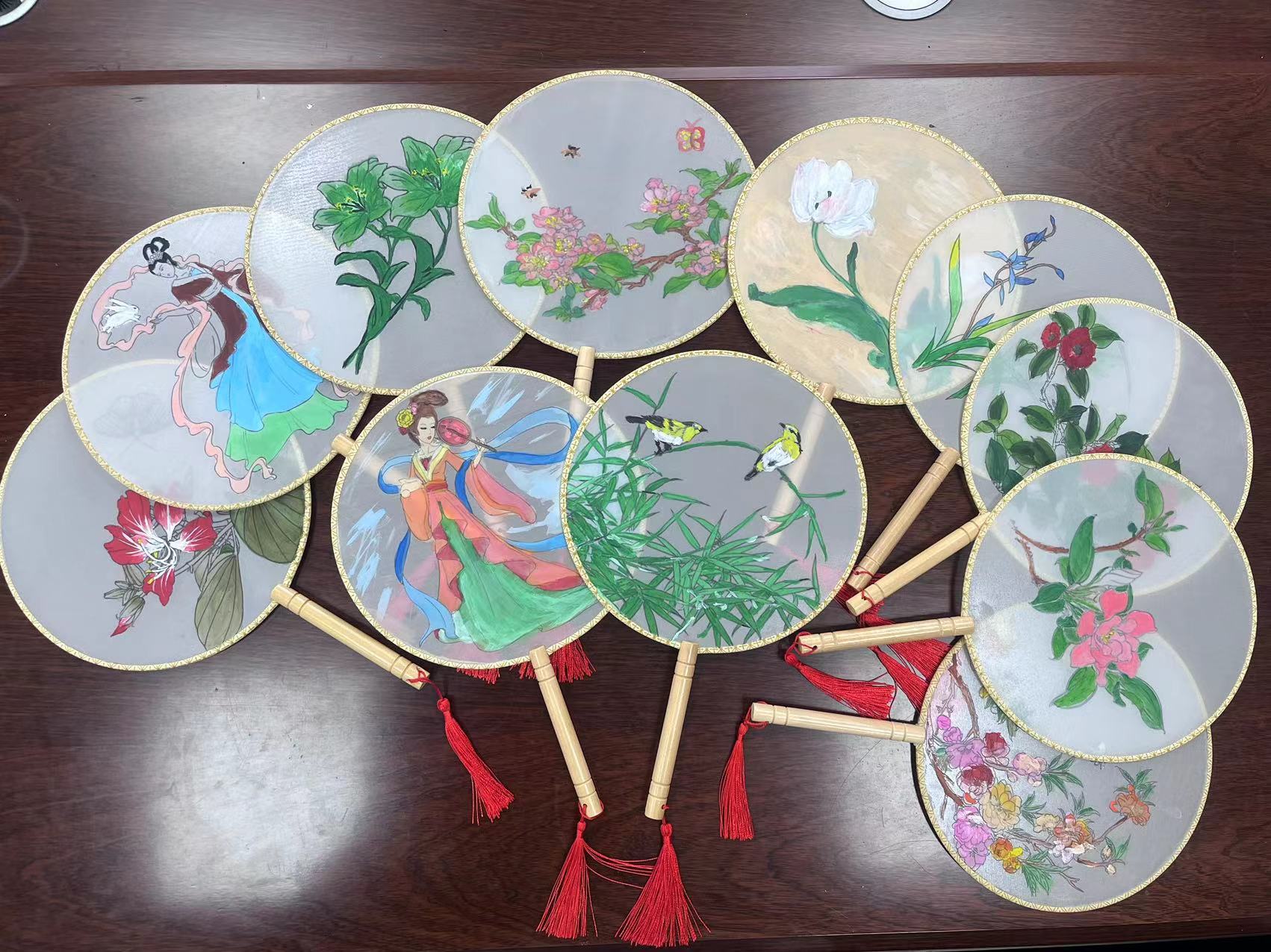 经过一个小时的精心制作,一把把充满艺术气息的团扇终于诞生了。作为一种传统的手工艺品,团扇象征了美好和团圆,扇面上不同颜色的花呈现出了不同的视觉效果,为原本平淡无奇的扇面平添了一抹色彩。这些团扇不仅凝聚了大家的智慧和汗水,更展现了师生们对于美好生活的向往和追求。最后,师生手持团扇,合影留念,记录下这美好而难忘的一刻。