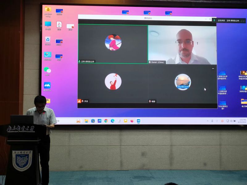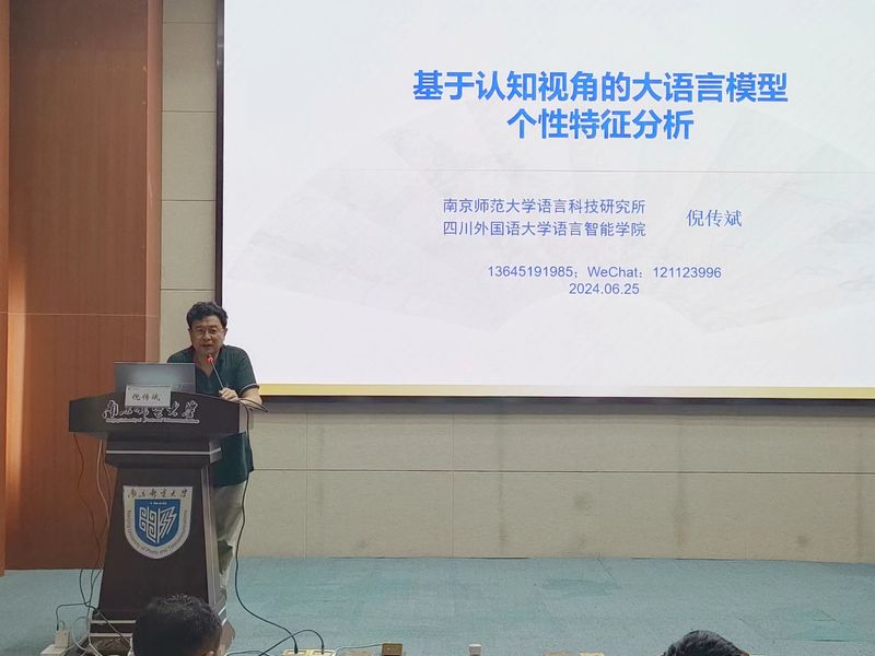 下午的主旨演讲环节,匈牙利国家科学院语言研究中心主任Daniel Z. Kadar教授在线探讨了从言语行为视角对大规模人工收集的在线数据进行分割和转录(CMC)这一网络治理的关键问题。他指出,CMC环境同时涉及单一和多源互动,涵盖书面和口语数据类型,认为“严谨地将在线数据分析为可复制的言语行为组成部分”非常重要。南京大学胡翼青教授的报告是“论‘第三交流’中的语言”。他指出,开放域的多轮对话机制使生成式人工智能互联网完成了“从猿到人”的转变;语言大模型所依赖的二进制的可编码性、可排列组合性强化了数字技术媒介体系的可计算性,语言也因此成为数字化的后果。他认为,人类将被机器语言所包围,传播正在变成人与机器的交流。而人如何通过机器与其他人更好地交流,将成为人类交流史上的一个重大难题。南京师范大学倪传斌教授以“基于认知视角的大语言模型个性特征分析”为题,从大语言模型和语言智能的界定,梳理了语言智能的起源、获得和特征,并从认识视角,分析了大语言模型在文学、角色扮演、心理测试等试验方面表现出的个性特征。电子科技大学李宪博博士作题为“计算语用学理论与实践研究”的报告,聚焦计算语用学这一新兴交叉学科领域,阐述了其理论、模型、算法与未来,同时也阐明了计算语用学的主要难点与挑战,以及计算语用学研究必要的思维品质。
