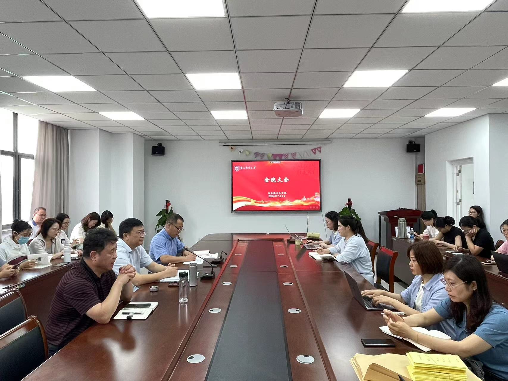 7月3日,公司在文科楼330会议室召开2024年春学期期末全院大会。公司党委书记李大伟、副经理(主持工作)史献芝、党委副书记、副经理朱奎泽出席会议,全体教师和办公室行政人员参加,会议由副经理(主持工作)史献芝主持。
