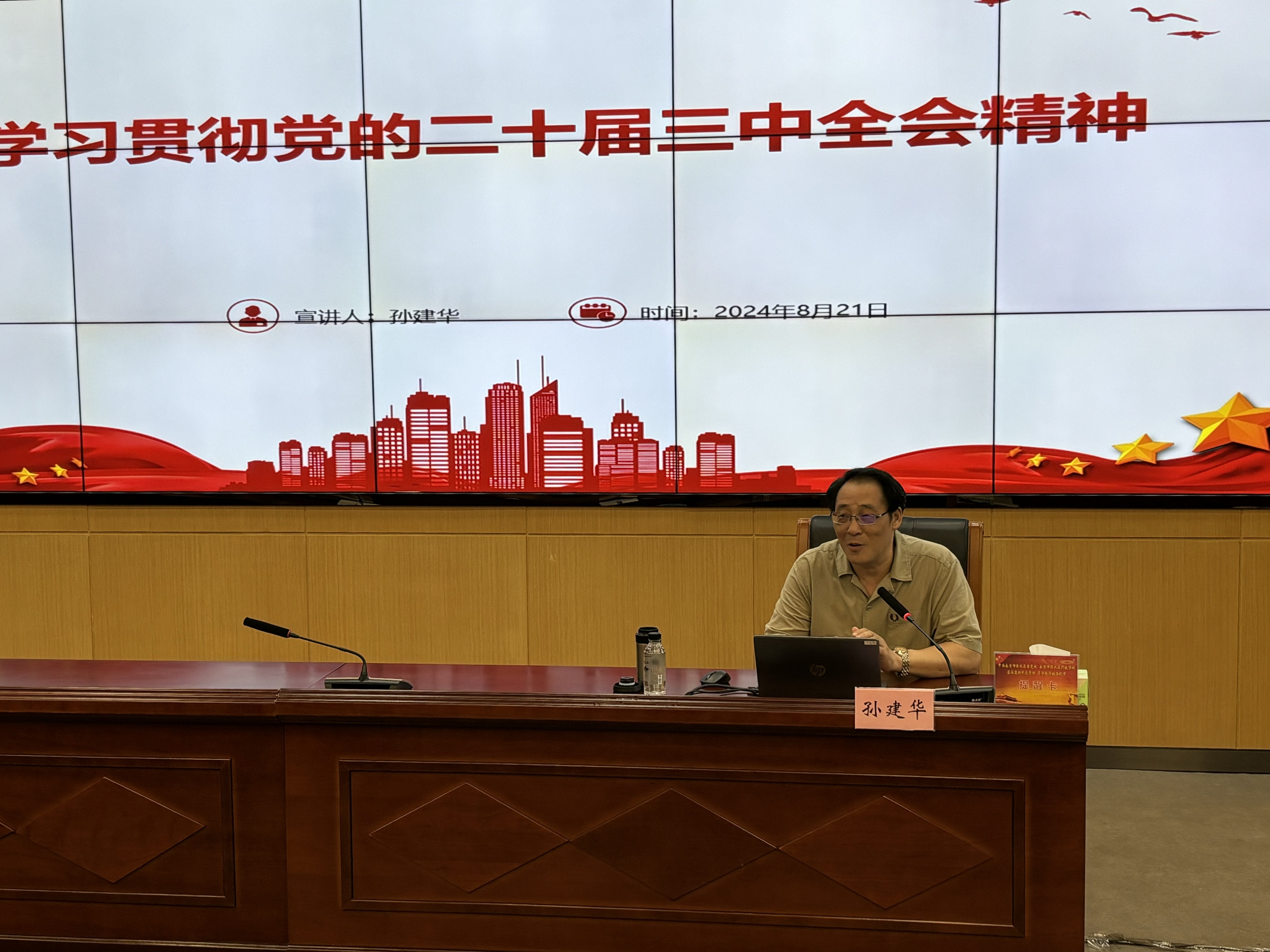 8月21日上午,苏州大学betway西汉姆联经理孙建华教授为学员作题为《学习贯彻党的二十届三中全会精神》的报告。孙教授从进一步全面深化改革的四个方面进行全面的阐述。他首先从全面深化改革的历届会议主题进行历史性梳理和回顾,其次是明确阐发全面深化改革过程中包括党的全面领导、以人民为中心、守正创新、以制度建设为主线、全面依法治国和系统观念的六大重要原则。然后从全面深化改革有关经济体制、技术、教育和人口等方面的重大举措进行全面解读。