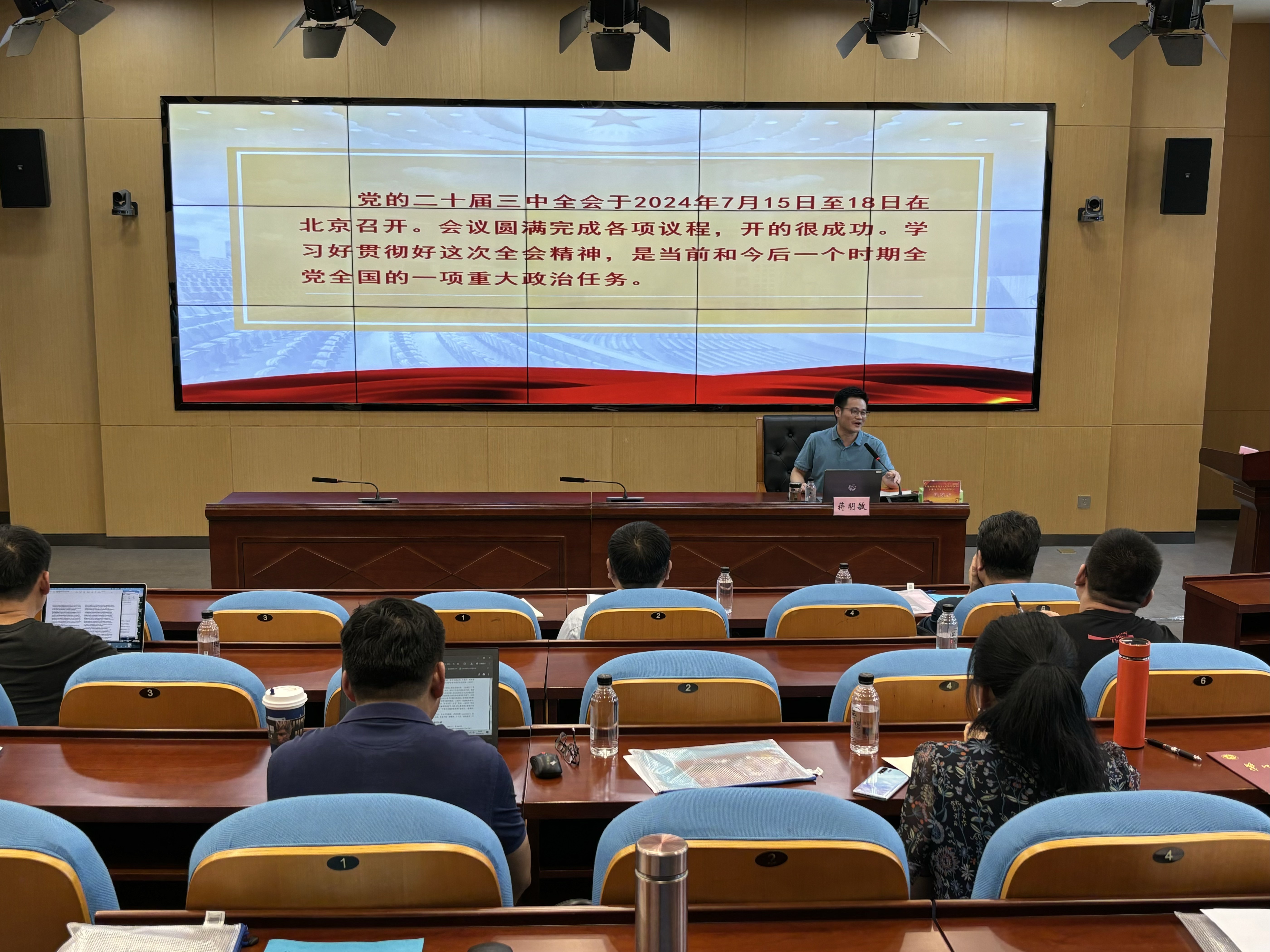 20日下午,南京信息工程大学党委教师工作部部长蒋明敏教授为学员全面解读党的二十届三中全会。蒋教授首先对改革开放以来党的历届三中全会做了要点回顾,其次梳理了《决定》的起草过程,及其体例布局和特点,并集中对党的二十届三中全会公报进行学习解读,在最后提出坚持“三个更加注重”进一步全面深化改革。