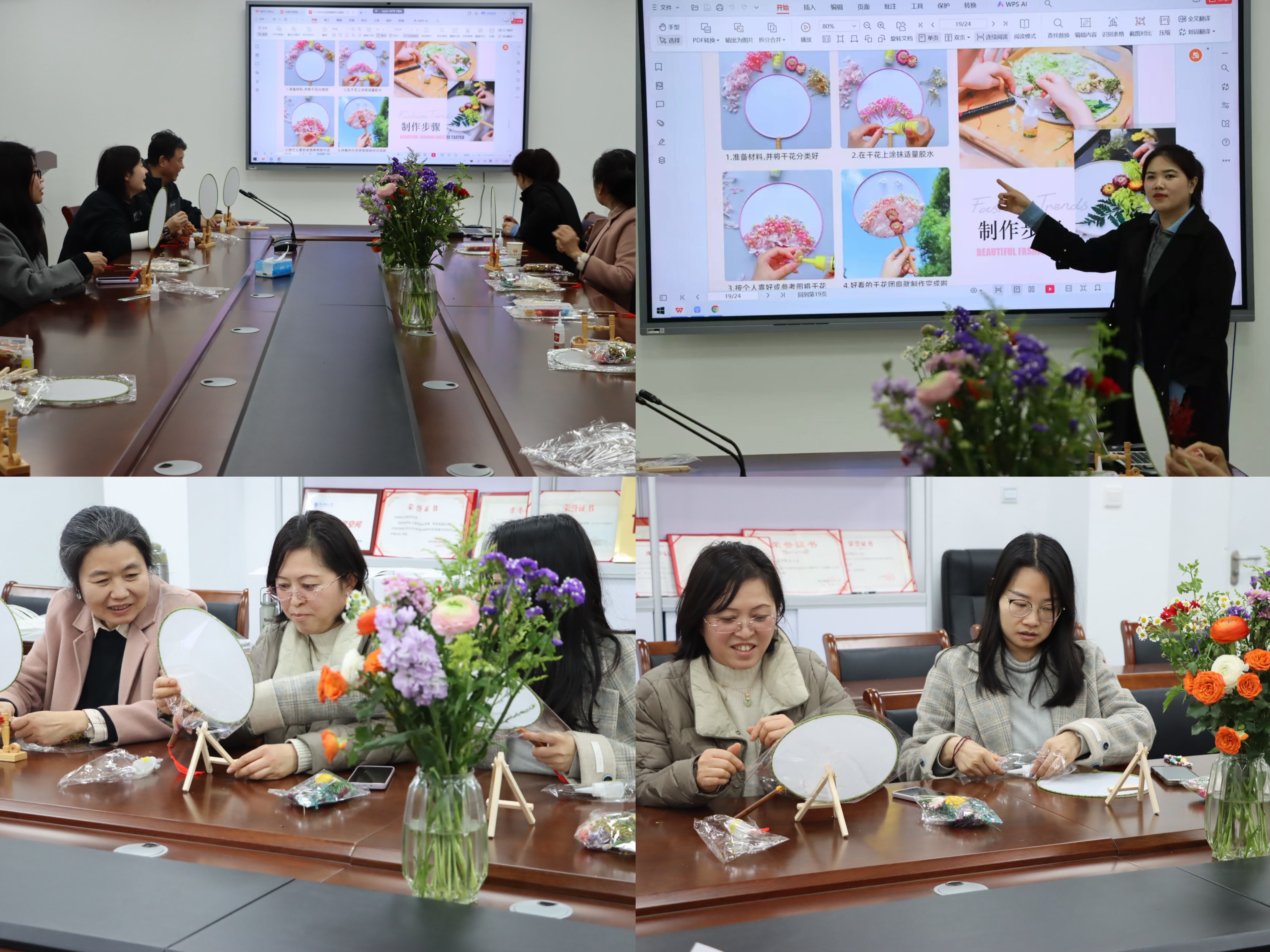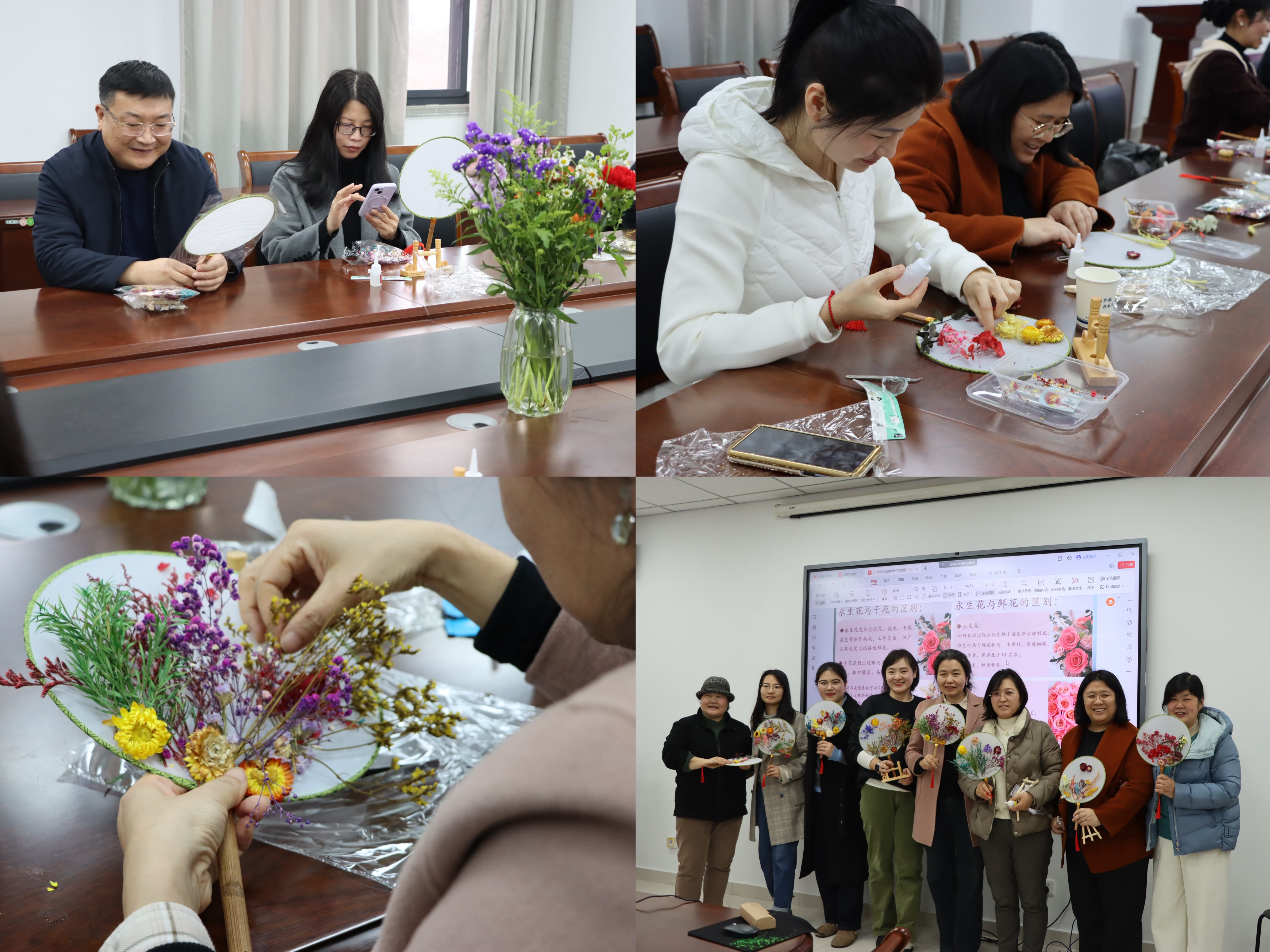 3月10日,betway西汉姆联分工会特别策划“‘团’圆‘友’扇”制永生花团扇活动,20余位女教职工集聚一堂,欢度“三八”国际劳动妇女节。活动将传统手工艺与现代美育相结合,通过沉浸式艺术创作展现新时代知识女性的独特风采。