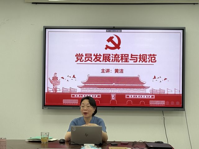 开班式结束后,黄洁老师以《党员发展流程与规范》为题讲授了专题党课。