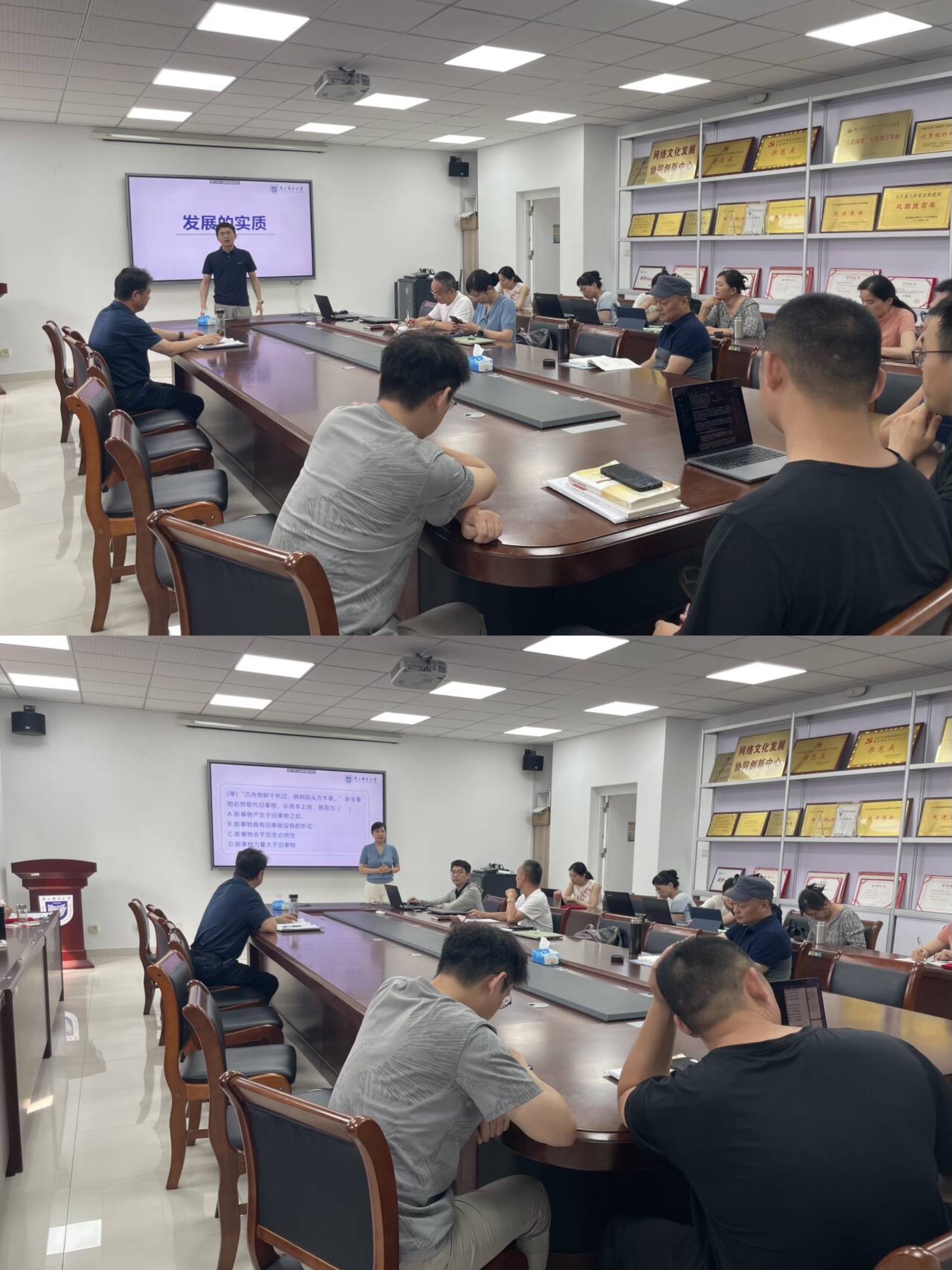 为深入贯彻落实教育部“思政课教学改革创新”要求,推进“大思政课”建设与信息技术深度融合,6月18日下午,学院在文科楼330会议室举办新老教师“同上一堂课”教学展示活动(第一期)。本次活动聚焦教学能力提升与团队协作创新,公司教学副经理朱奎泽、教学督导组专家、各教研室主任出席活动,全院教师参与观摩。