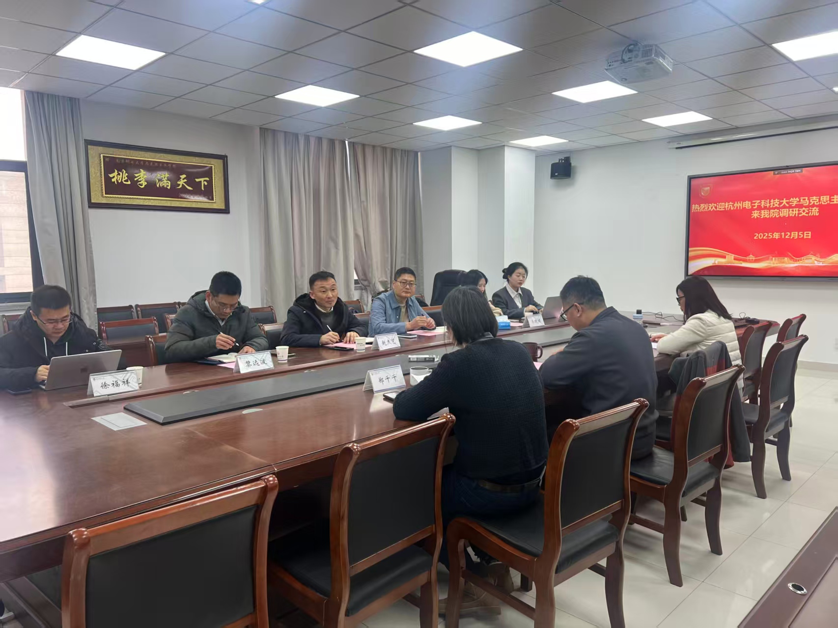 为深化新时代思政课教学改革,加强校际间教学经验分享与合作,2025年12月5日上午,杭州电子科技大学betway西汉姆联一行6人到公司调研交流。交流会在文科楼330会议室举行,会议由陈宗章教授主持。陈宗章首先代表betway西汉姆联对杭州电子科技大学betway西汉姆联一行的到来表示热烈欢迎。随后,郑千千介绍了“习近平新时代中国特色社会主义思想概论”课程的基本情况和经验做法。沈金霞聚焦课程信息化、数智化教学改革,展示了南邮在思政课数字化教学方面的进展情况实践成果。杭电betway西汉姆联赵杰艺、黎远波等老师也分享了他们思政课建设的特色经验,大家围绕课程体系构建、团队队伍建设等方面展开了深入交流。